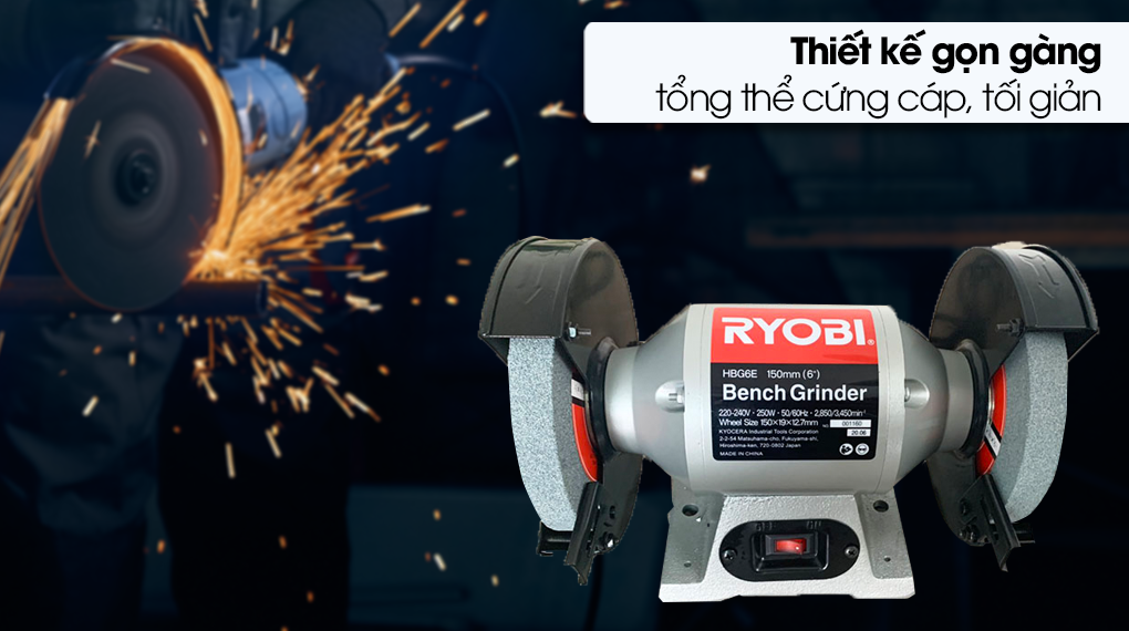 Máy mài hai đá Ryobi HBG-6E 250W thiết kế chắc chắn, tối giản, công suất lớn cùng nhiều tiện ích đi kèm sẽ tạo ra bề mặt sản phẩm láng mịn, tăng năng suất làm việc, tiết kiệm thời gian cho người sử dụng.