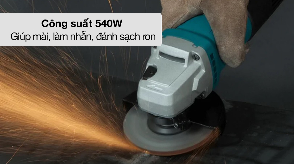 - Chiếc máy mài Makita này sở hữu công suất 540W, có khả năng đạt tốc độ không tải tối đa đến 12.000 vòng/phút nên có thể mài các chi tiết hoặc làm nhẵn các mối hàn, các cạnh sắc được dễ dàng.