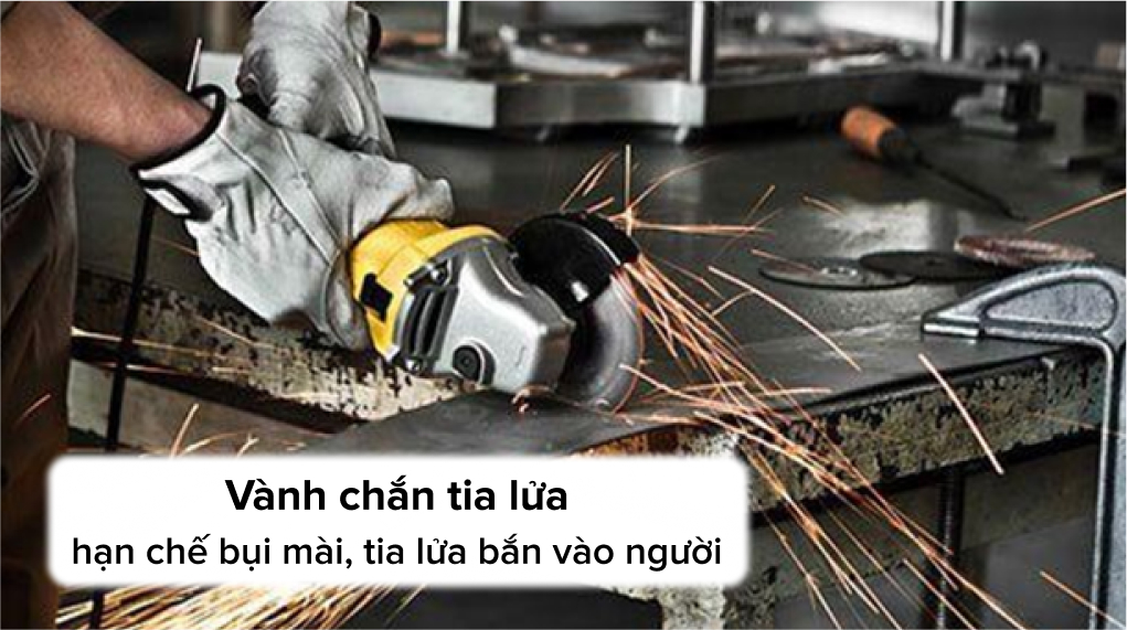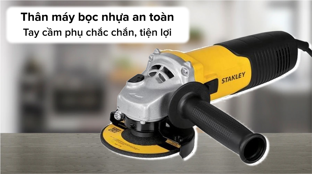 - Máy mài Stanley dùng điện có trang bị vành chắn tia lửa hạn chế các tia lửa bắn vào người gây bỏng hay bụi mài sinh ra làm ảnh hưởng đến sức khỏe người sử dụng.