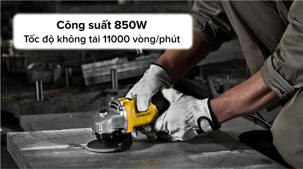 Máy mài góc Stanley STGS8100-B1 850W được chế tác tỉ mỉ từ vật liệu hợp kim và nhựa tổng hợp giúp nâng cao độ bền của thiết bị. Động cơ vận hành ở công suất 850W với tốc độ mài tối đa 11000 vòng/phút cung cấp cường độ làm việc mạnh mẽ, nhanh chóng và ổn định trong thời gian dài.