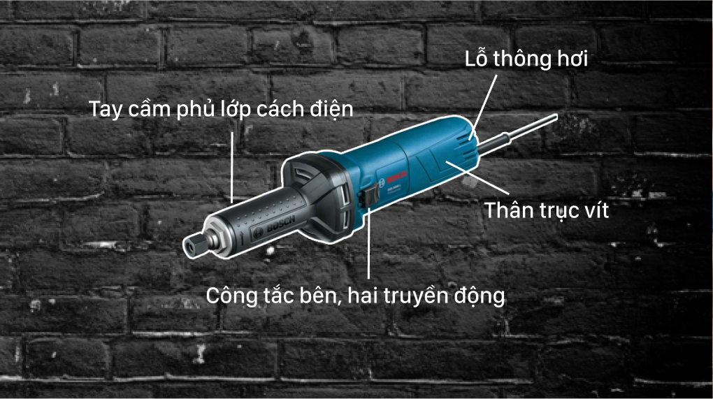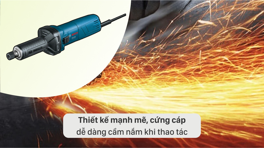 - Máy mài thẳng có kiểu dáng cứng cáp, thiết kế nhỏ gọn dễ cầm nắm, cho phép thao tác dễ dàng ở nhiều tư thế khác nhau, kể cả những vị trí có không gian chật hẹp.
