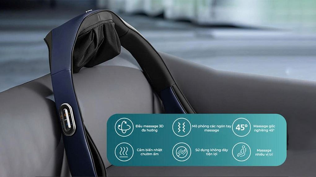 - Thiết kế dạng đai choàng hiện đại, ôm sát vùng cổ - vai - gáy, mang lại cảm giác thoải mái khi sử dụng tại nhà, nơi làm việc hoặc khi di chuyển.