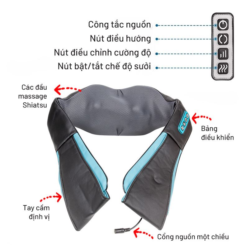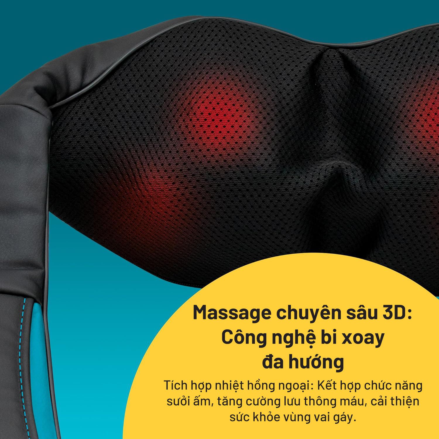 Máy massage cổ, vai, gáy sử dụng phương pháp massage Shiatsu, máy mô phỏng thao tác xoa bóp bằng tay thật, kết hợp 2 hướng quay linh hoạt để làm mềm cơ và giảm nhức mỏi. Chức năng sưởi ấm hồng ngoại giúp thúc đẩy tuần hoàn máu, tăng hiệu quả thư giãn và hỗ trợ phục hồi nhanh chóng sau căng cơ.