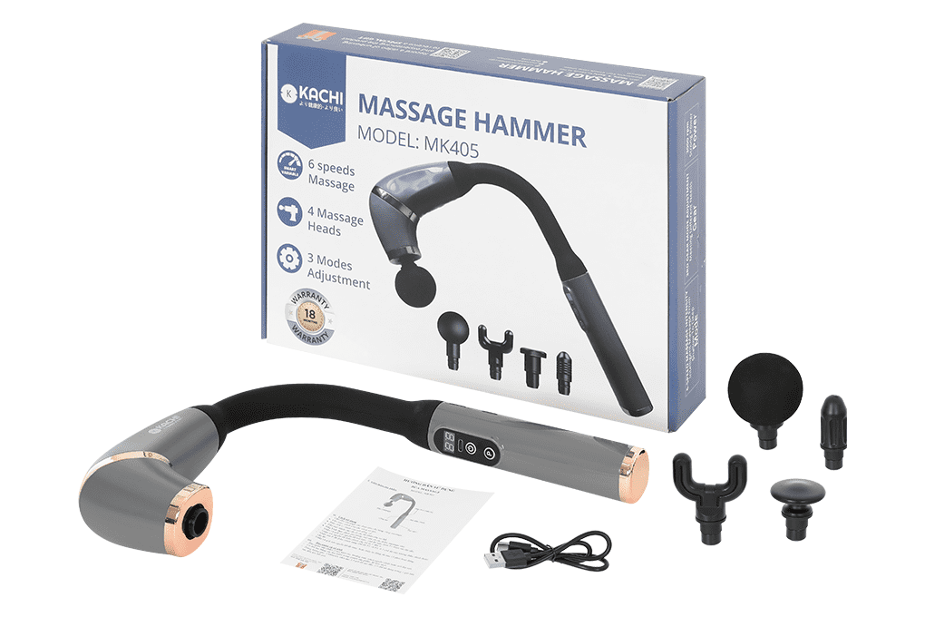 Gậy massage Kachi MK405 nhỏ gọn, dễ sử dụng, tích hợp 4 đầu massage và 6 mức rung lên đến 3000 vòng/phút, hỗ trợ thư giãn cơ hiệu quả và dễ dàng mang theo khi đi làm hay du lịch.