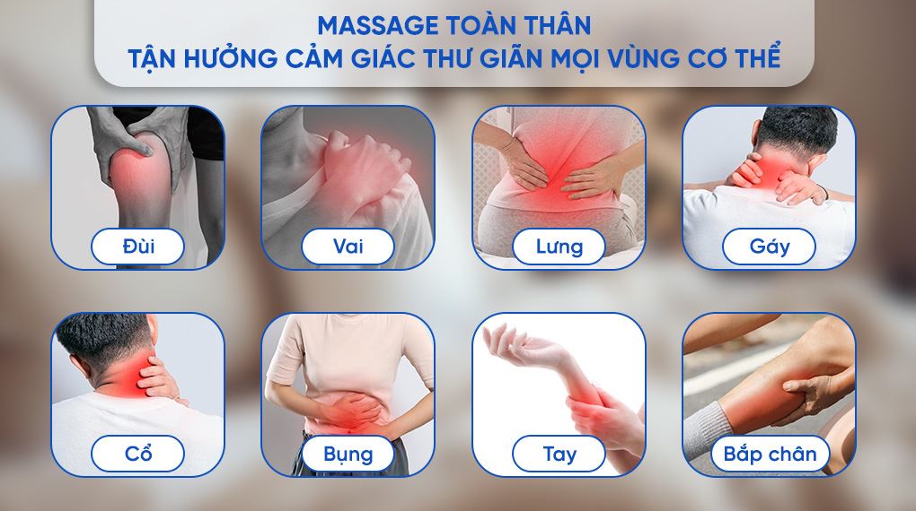Sản phẩm có thể dùng để massage ở nhiều vị trí khác nhau như cổ, vai, gáy, lưng, bụng, đùi.