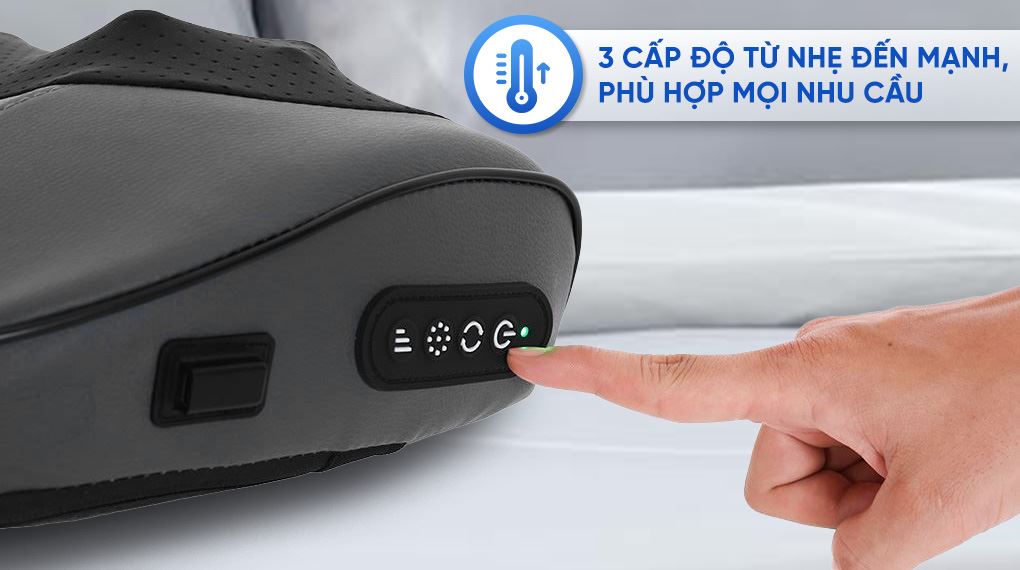 Với công suất 23W, gối vận hành ổn định, lực ấn vừa phải. Bạn có thể điều chỉnh 3 cấp độ massage khác nhau, từ nhẹ đến mạnh, phù hợp với nhiều nhu cầu thư giãn và giảm đau. Mỗi chu kỳ kéo dài 10 phút, vừa đủ để cơ bắp thả lỏng hợp lý.