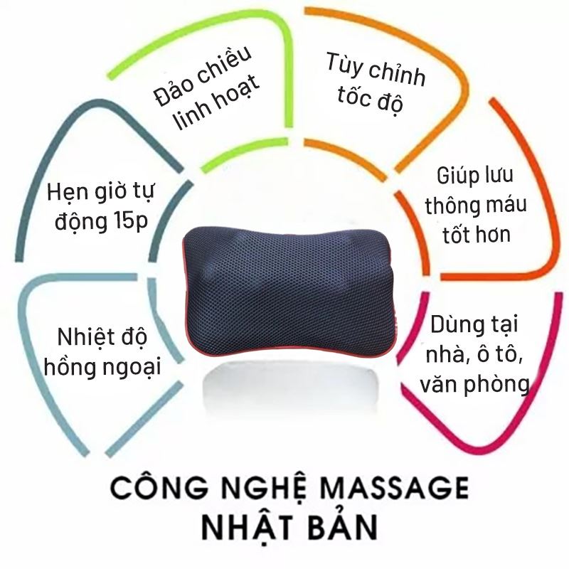 Tích hợp chức năng làm nóng nhẹ (soothing heat), gối không chỉ giúp thư giãn cơ mà còn kích thích tuần hoàn máu, thích hợp cho người làm việc văn phòng, người lớn tuổi hoặc thường xuyên đau mỏi vai gáy.