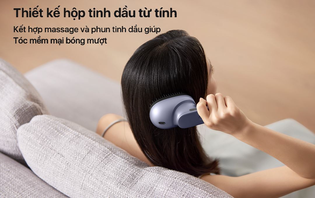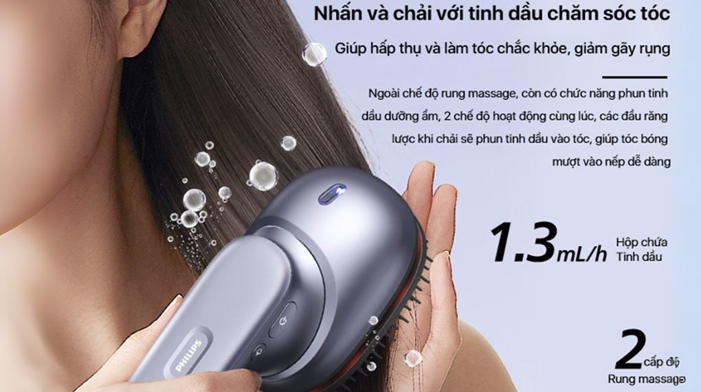 - Máy massage cá nhân Philips tích hợp hệ thống phun tinh dầu dưỡng ẩm giúp tóc mượt mà và da đầu được chăm sóc chuyên sâu hơn. Công nghệ phun nhiệt điện đại hỗ trợ phân tách tinh dầu thành phân tử siêu nhỏ, dễ dàng thẩm thấu vào tóc và da đầu.