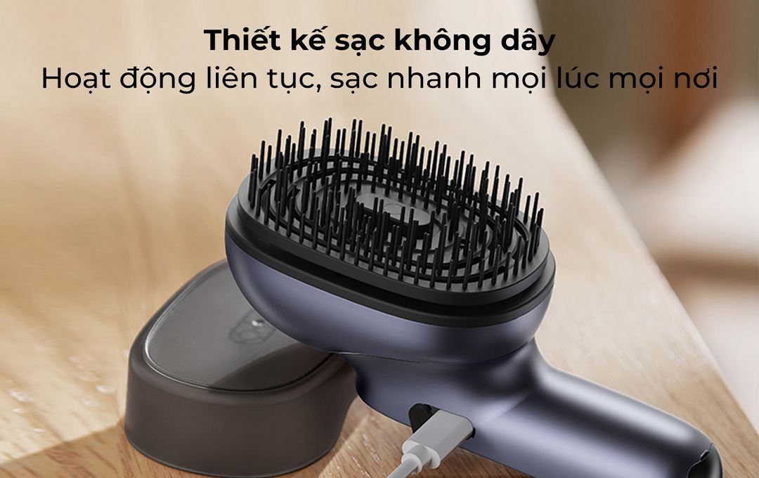 - Đầu rung mạnh mẽ cho tần số rung lên đến 2400 lần/phút kết hợp với gai lược tạo hiệu quả massage sâu, giúp tăng tuần hoàn máu, làm giảm căng thẳng và hỗ trợ thư giãn tốt hơn.