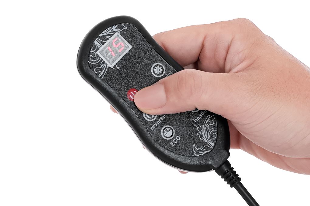 Trên bảng điều khiển, bạn có thể bật/tắt máy, chọn chế độ massage, thay đổi cường độ, bật chức năng nhiệt chỉ với vài thao tác. Phản hồi của các nút nhanh và chính xác, mang lại trải nghiệm tiện lợi hơn nhiều so với các mẫu nút cơ truyền thống.