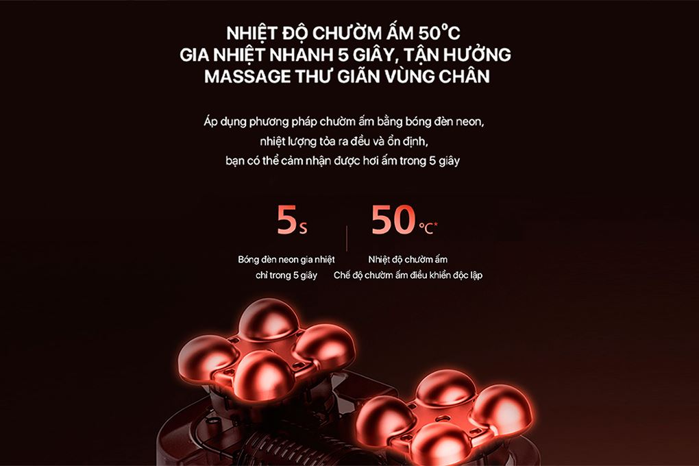Ngoài 2 chế độ trên, máy massage chân Philips còn được trang bị chế độ chườm ấm độc lập ở mức nhiệt 50°C giúp kích thích tuần hoàn máu và giảm đau nhức rõ rệt. Chức năng này mang lại cảm giác ấm áp, dễ chịu và thư giãn tối đa, đặc biệt phù hợp cho những ai làm công việc phải đứng và đi lại nhiều.