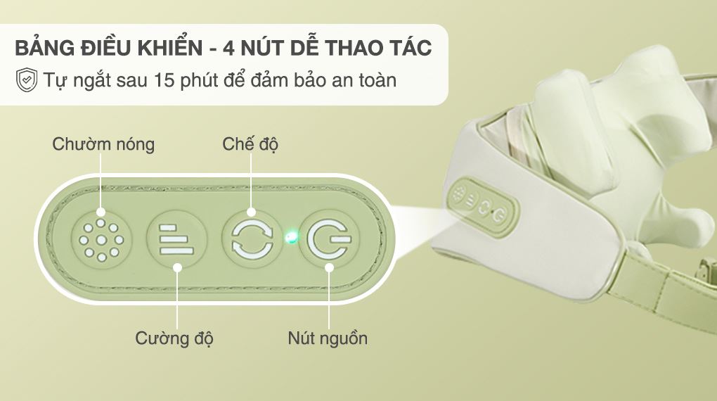 Cơ chế tự ngắt sau 15 phút đảm bảo an toàn, đồng thời tránh tình trạng massage quá lâu.