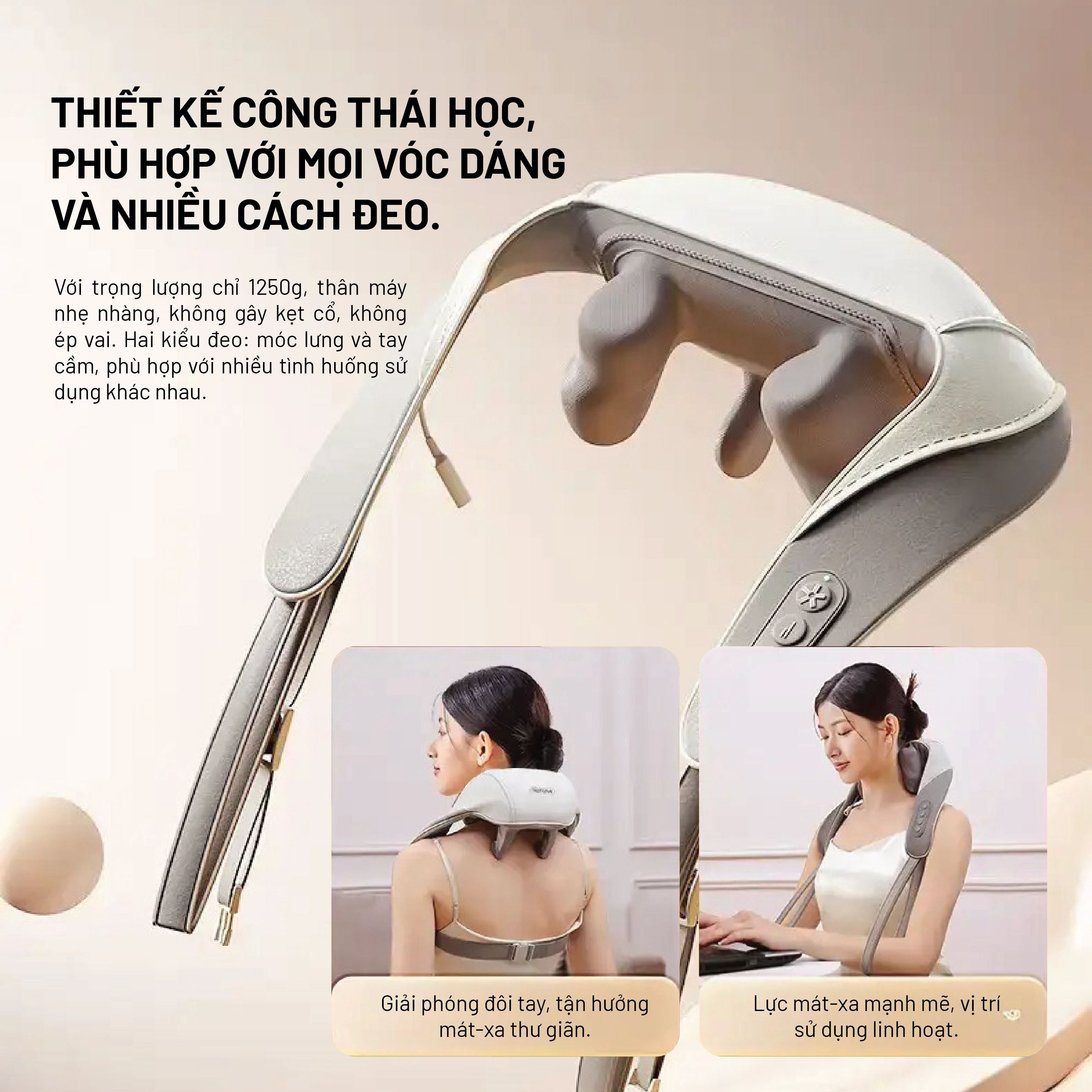 Máy massage Tech Love này ứng dụng công nghệ xung điện kết hợp rung tần số cao (2500–3500 lần/phút), hỗ trợ làm dịu vùng cơ căng cứng ở cổ, vai, gáy và cải thiện tuần hoàn máu