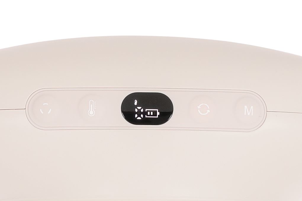 Màn hình hiển thị có cột pin giúp bạn theo dõi được trạng thái nạp năng lượng, tránh tình trạng đai hết pin bất ngờ khi đang sử dụng. Với cách thiết kế này, bạn có thể sạc khi rảnh, rồi dùng lại nhiều lần trong ngày mà không phải cắm dây trực tiếp trong lúc chườm.