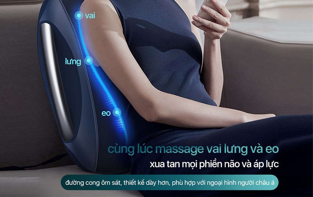 Lấy cảm hứng từ cấu trúc tự nhiên của cơ thể, thiết bị được thiết kế theo đường cong ôm sát vùng lưng, mang lại cảm giác dễ chịu khi sử dụng. Nhờ kiểu dáng nhỏ gọn, bạn có thể đặt máy lên ghế sofa, ghế làm việc và sử dụng như một chiếc ghế massage mini linh hoạt. Dù người dùng có vóc dáng nhỏ nhắn hay cao lớn, thiết bị vẫn đảm bảo độ ôm sát vừa vặn, thích hợp sử dụng trong nhiều tư thế và không gian khác nhau.