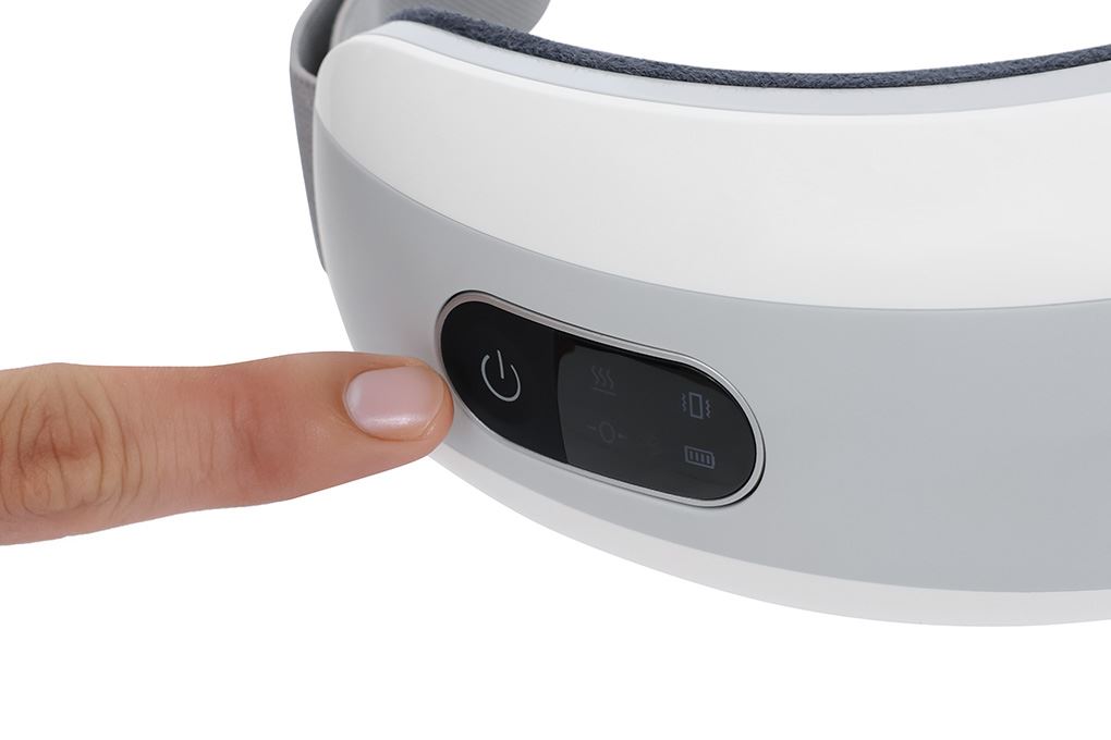 Máy massage mắt được điều khiển bằng một nút duy nhất: nhấn giữ 3 giây để bật nguồn, lúc này máy sẽ khởi động với chế độ nhiệt hồng ngoại thấp. Nhấn thêm để chuyển giữa các chế độ: massage túi khí, rung, hoặc kết hợp cả hai cùng sưởi nhiệt. Nhấn giữ nút nguồn 3 - 4 giây để tắt máy. Người dùng có thể thao tác dễ dàng dù đang nằm thư giãn hoặc ngồi làm việc.