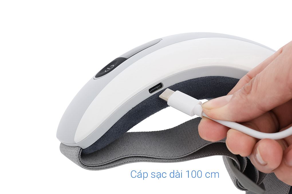 Phần thân máy làm từ nhựa bóng kết hợp lớp đệm vải mềm tiếp xúc nhẹ nhàng với vùng mắt, tạo cảm giác êm ái và ôm sát khuôn mặt. Dây đeo co giãn linh hoạt, phù hợp với nhiều kích cỡ đầu, giúp cố định chắc chắn trong suốt quá trình massage.