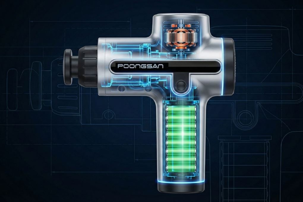 Súng massage Poongsan G10 có kiểu dáng cầm tay nhỏ gọn, thân máy bằng nhựa ABS cho cảm giác chắc chắn nhưng vẫn đủ nhẹ để thao tác trên nhiều vùng cơ thể khác nhau. Vùng sử dụng được thiết kế cho toàn thân, phù hợp từ vai gáy, lưng, tay đến bắp chân.