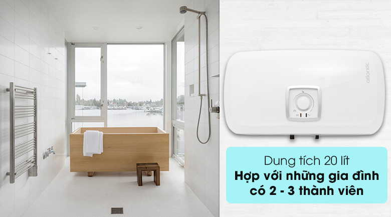 Là loại máy làm nóng gián tiếp, bình tắm nóng lạnh Atlantic 20 lít này sẽ phục vụ tốt cho những gia đình có khoảng 3 thành viên.