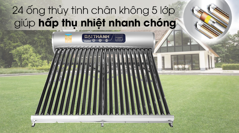 Tăng hiệu quả thu nhiệt và làm nóng nhanh với 24 ống thủy tinh chân không 5 lớp