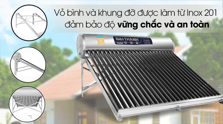 Máy nước nóng năng lượng mặt trời Đại Thành 250 lít Classic 58-24 - Vỏ, khung làm từ Inox