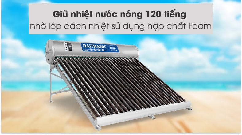 Lớp cách nhiệt từ máy nước nóng Đại Thành này với chất liệu là hợp chất Foam giữ nhiệt độ nước lên tới 120 tiếng, làm nước được nén chặt giúp đảm bảo nhiệt độ nước trong những ngày không có ánh nắng hoặc nắng ít.