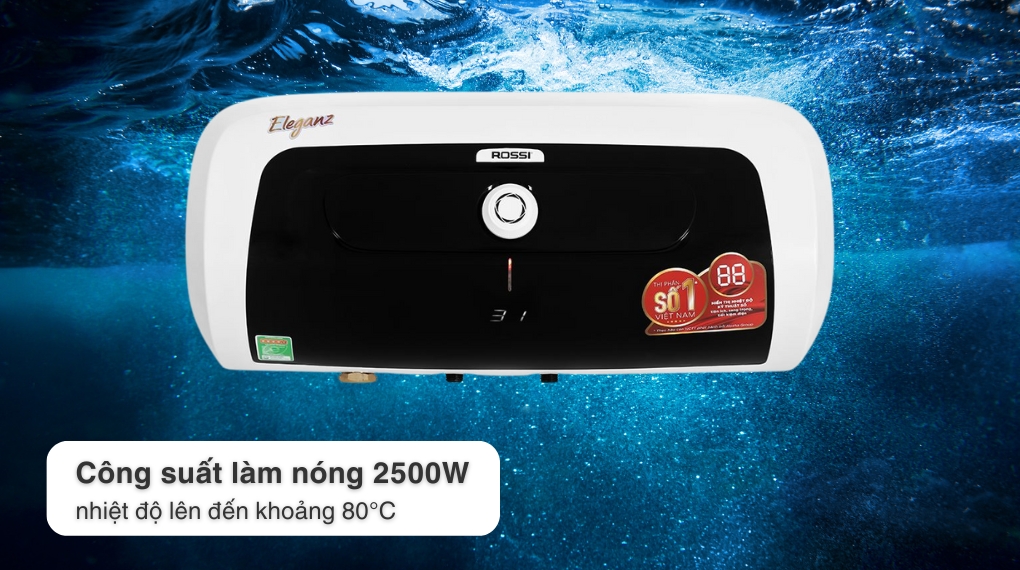 - Thuộc dòng máy nước nóng gián tiếp, Rossi Eleganz 20 lít 2500W REZ20SL có dung tích 20 lít phù hợp với gia đình khoảng 3 thành viên.