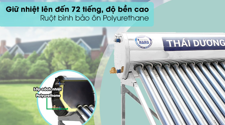 Máy nước nóng Sơn Hà có tích hợp lớp cách nhiệt Polyurethane được phun nén áp lực, đảm bảo được độ nén chặt và có thể giữ nhiệt lên đến 72 tiếng. Giúp người dùng đảm bảo được nguồn nước nóng sinh hoạt vào những ngày mưa hoặc không có nắng.