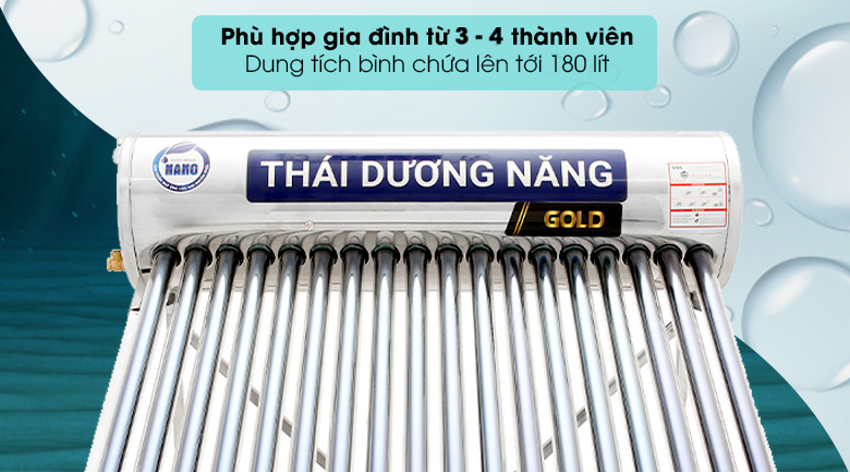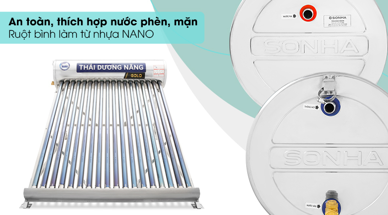 Máy nước nóng năng lượng mặt trời Sơn Hà 180 lít GOLD NANO F58 là sản phẩm bảo vệ môi trường, giúp tiết kiệm điện, mang lại nhiều lợi ích sử dụng lâu dài.