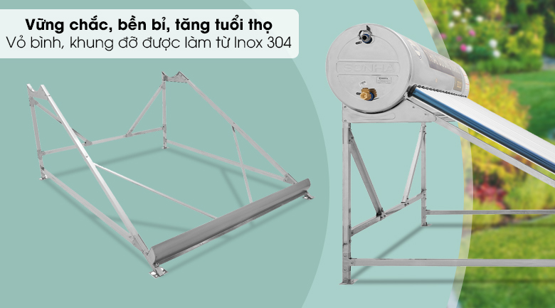 Máy nước nóng năng lượng mặt trời Sơn Hà này có dung tích bình chứa 180 lít và có thể đáp ứng đủ nhu cầu sử dụng nước nóng cho gia đình nhỏ có 3 - 4 người.