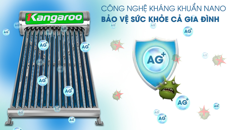 Công nghệ Nano kháng khuẩn trên máy nước nóng Kangaroo được Viện Quatest 1 công nhận có thể diệt khuẩn sạch 99,9% vi khuẩn.