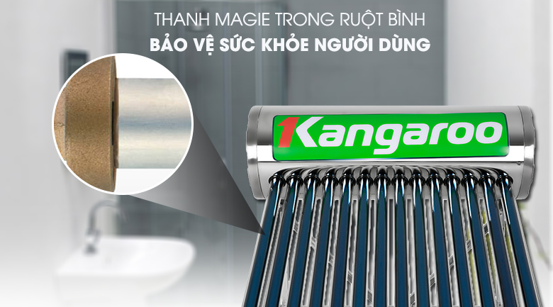 Máy nước nóng năng lượng mặt trời này được hãng trang bị thêm thanh Magie trong ruột bình, hạn chế xảy ra hiện tượng ăn mòn điện hóa bên cạnh yếu tố chống bám cặn diễn ra trong bình chứa, nhằm duy trì độ bền cho sản phẩm.