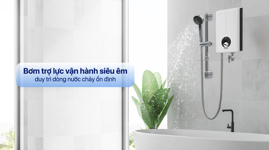Bơm trợ lực tích hợp hỗ trợ tăng áp lực nước tại những khu vực nguồn nước yếu hoặc vị trí lắp đặt xa bồn chứa. Máy được thiết kế để hoạt động trong dải áp lực từ 0.015 MPa đến 0.5 MPa, giúp duy trì dòng nước ổn định hơn khi tắm. Bơm trợ lực vận hành êm, hạn chế tiếng ồn ảnh hưởng đến không gian sinh hoạt xung quanh.