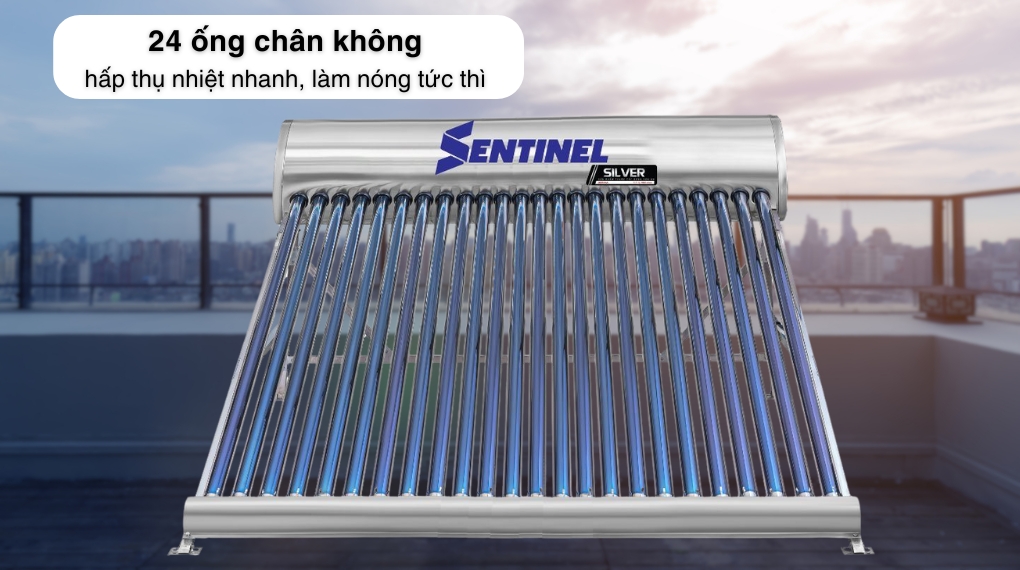 Máy nước nóng năng lượng mặt trời Sơn Hà 240 lít Sentinel Silver 58-240G là giải pháp dành cho gia đình từ 4 đến 5 người có nhu cầu sử dụng nước nóng thường xuyên. Thiết bị sử dụng công nghệ ống chân không, dung tích lớn và khả năng giữ nhiệt tốt giúp tiết kiệm điện và đảm bảo tiện nghi cho sinh hoạt hằng ngày.