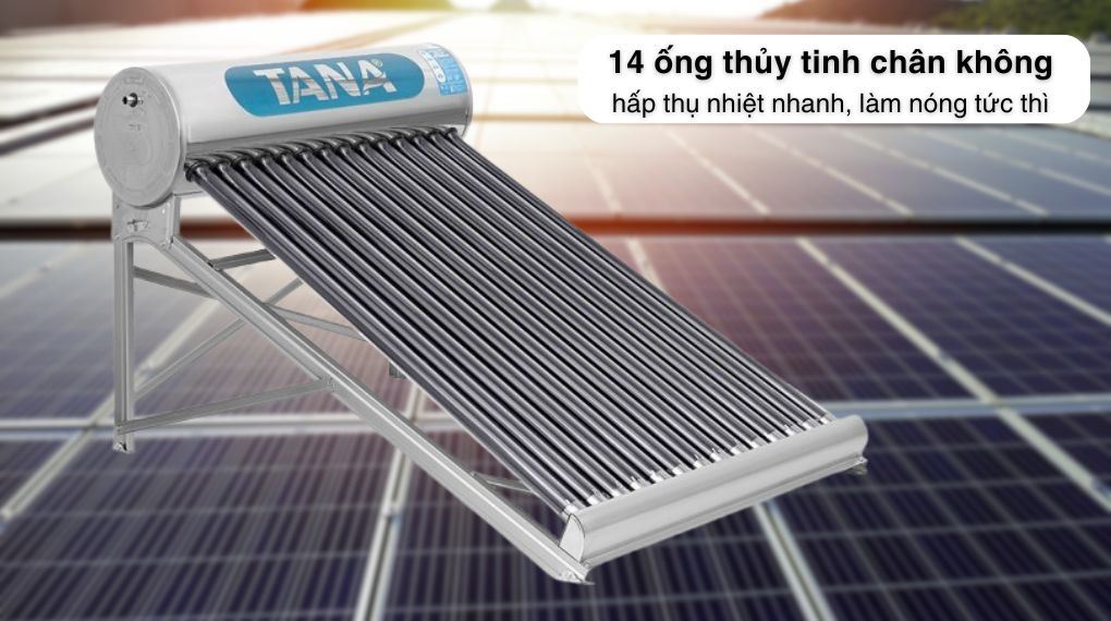 Sản phẩm sử dụng 14 ống thủy tinh chân không 5 lớp, có khả năng hấp thụ bức xạ mặt trời hiệu quả và hạn chế thất thoát nhiệt. Nhờ đó, nước có thể được đun nóng đến khoảng 75°C trong điều kiện nắng tốt.
