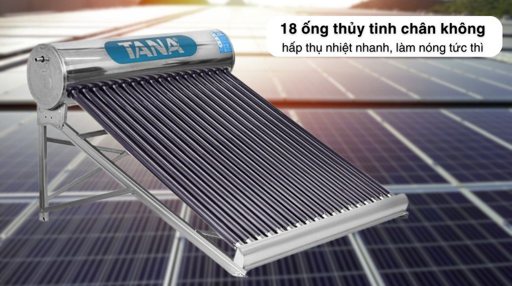 Sản phẩm trang bị 18 ống thủy tinh chân không 5 lớp, có khả năng hấp thụ ánh nắng hiệu quả và hạn chế thất thoát nhiệt. Nhờ đó, nhiệt độ nước có thể đạt khoảng 75°C khi đủ nắng.
