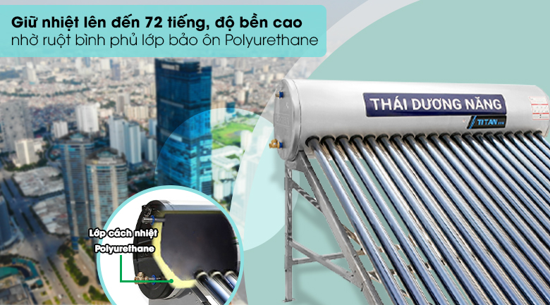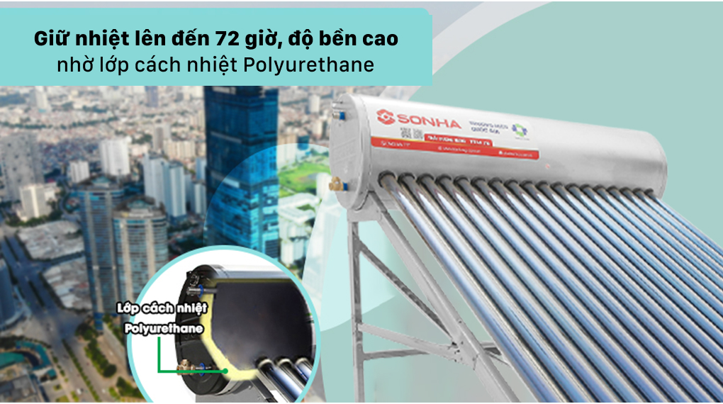 Không phải lo nước nguội đi và thiếu nước ấm sử dụng khi thời tiết nắng ít hay nắng yếu, vì bình có thể duy trì nhiệt độ bên trong lâu đến 72 tiếng nhờ vào lớp cách nhiệt từ hợp chất Polyurethane cách nhiệt cao cấp.
