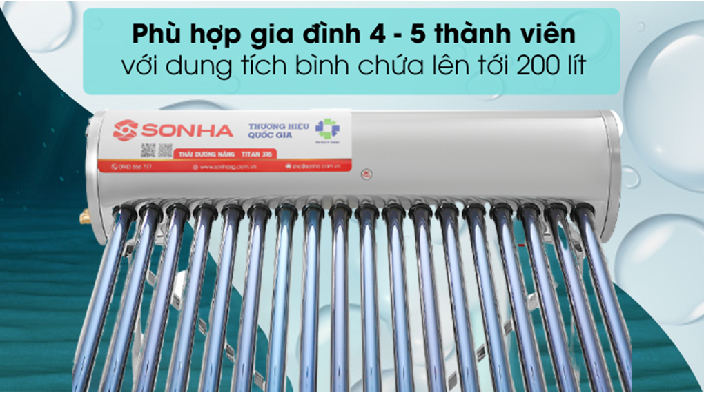 Tóm lại, để đáp ứng nhu cầu sử dụng nước nóng cho gia đình, nhưng đảm bảo tiết kiệm điện và bảo vệ môi trường, Máy nước nóng năng lượng mặt trời Sơn Hà 200 lít TiTan F58 là một lựa chọn đáng chú ý cho gia đình bạn.