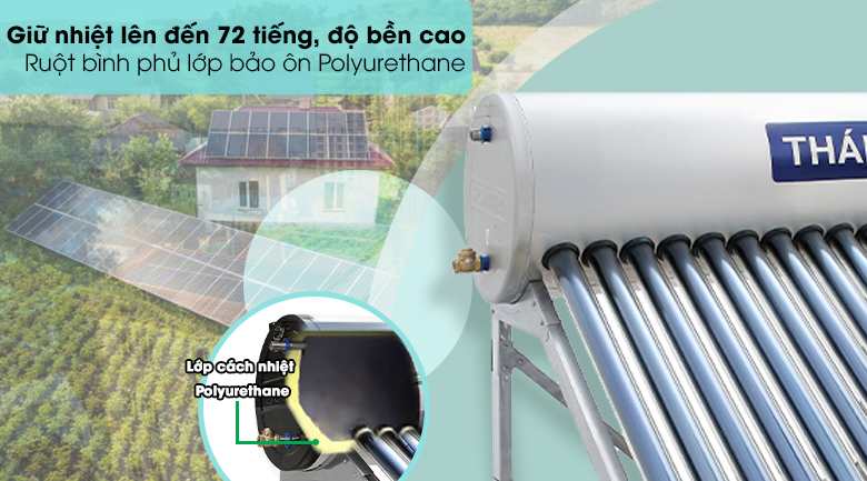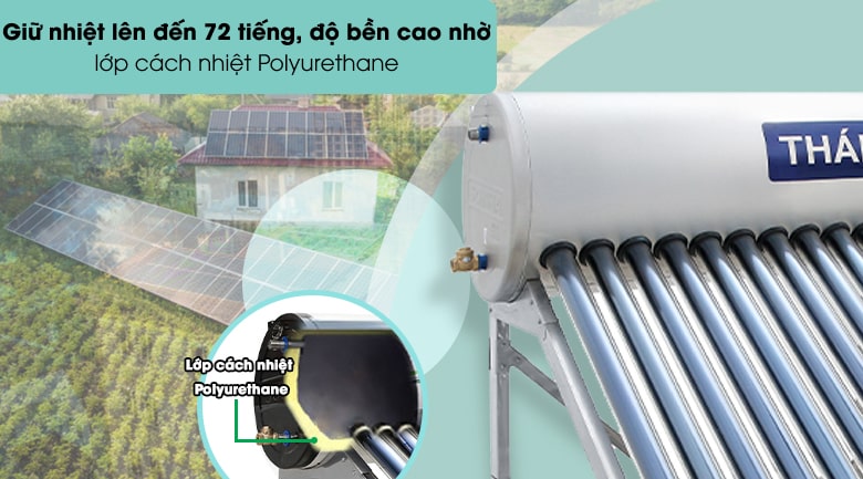 Máy nước nóng Sơn Hà năng lượng mặt trời này có lớp cách nhiệt Polyurethane được phủ kín bên trong giúp giữ nhiệt độ nước luôn nóng với thời gian lên đến 72 tiếng, thích hợp với những nơi có ánh sáng yếu hoặc những ngày ít nắng,...