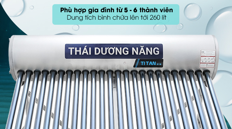 Máy nước nóng năng lượng mặt trời Sơn Hà 260 lít TiTan F58 là sản phẩm bảo vệ môi trường, giúp tiết kiệm điện và tránh xảy ra hiện tượng cháy nổ, mang lại nhiều lợi ích sử dụng lâu dài.