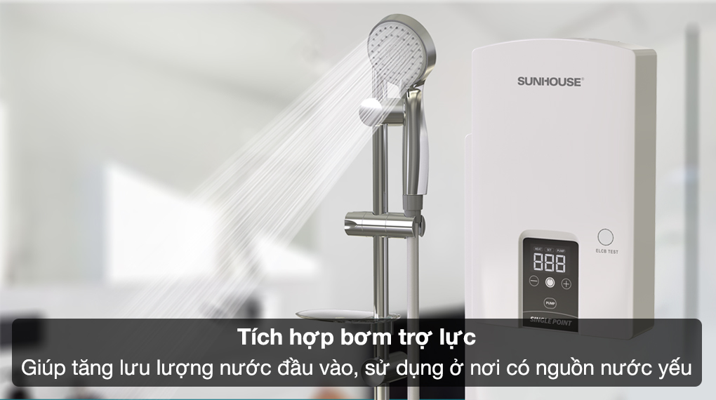 MÁY NƯỚC NÓNG TRỰC TIẾP SUNHOUSE 4500W SHA-9453EP - Tích hợp bơm trợ lực cho lưu lượng nước đầu ra mạnh mẽ