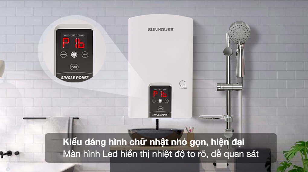 MÁY NƯỚC NÓNG TRỰC TIẾP SUNHOUSE 4500W SHA-9453EP - Thiết kế hình hộp chữ nhật nhỏ gọn, trang bị màn hình Led hiển thị