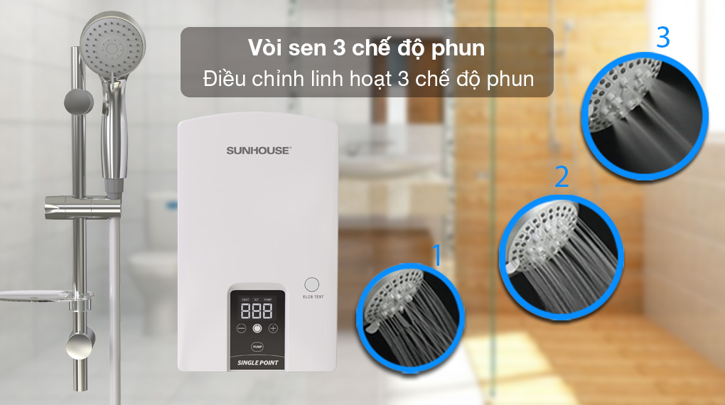 MÁY NƯỚC NÓNG TRỰC TIẾP SUNHOUSE 4500W SHA-9453EP - Vòi sen 3 chế độ phun tiện lợi cho việc sử dụng