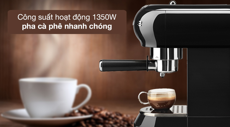 Máy pha cà phê Smeg ECF01BLEU (535.43.650) với thiết kế sang trọng, hệ thống tạo bọt Cappuccino, ThermoBlock, công suất 1350W, dung tích bình chứa nước 1 lít, nhiều phụ kiện tiện ích đi kèm cho bạn tạo nên những cốc cà phê hấp dẫn cho chính mình và mọi người thưởng thức.