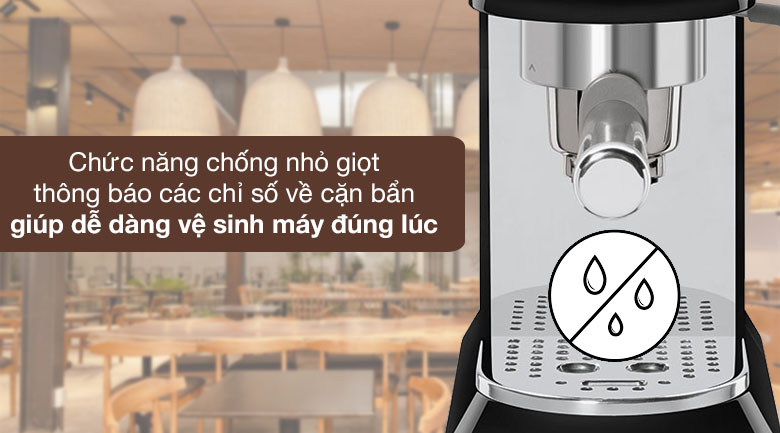 Chức năng chống nhỏ giọt hạn chế cà phê nhiễu ra từ vòi, tránh lãng phí cà phê và giữ cho khu vực xung quanh máy sạch sẽ, không tốn thời gian vệ sinh khi kết hợp với khay chứa nước dễ tháo rời, tiện làm sạch.