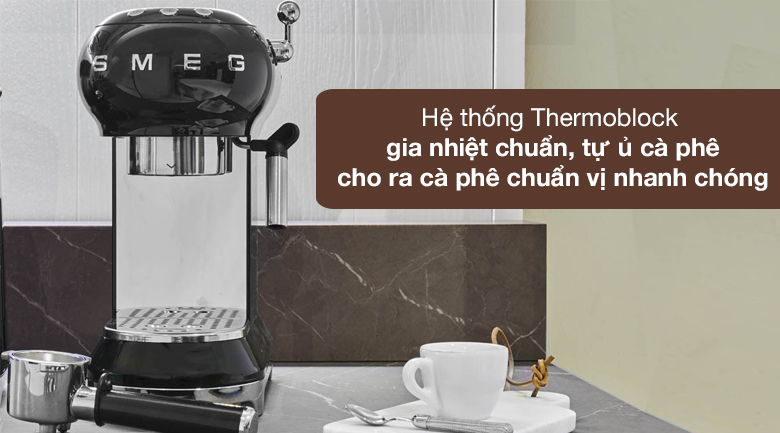 Hệ thống làm nóng nước Thermoblock tự động ủ cà phê, duy trì nhiệt độ nước chính xác và hoàn hảo giúp pha chế những cốc cà phê chuẩn vị nhất trong thời gian ngắn. Hệ thống này được lập trình để chiết xuất nước ngắt quãng 2 lần, lần đầu: ủ cà phê, lần 2: chiết xuất cà phê.