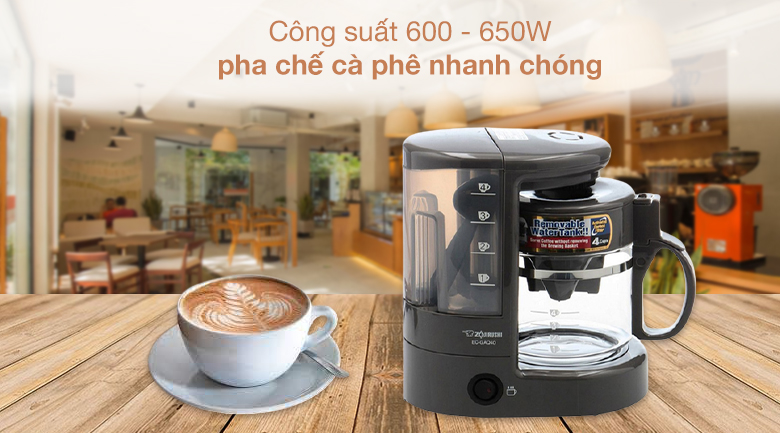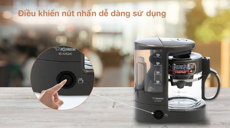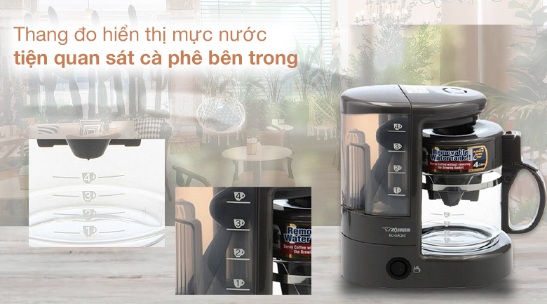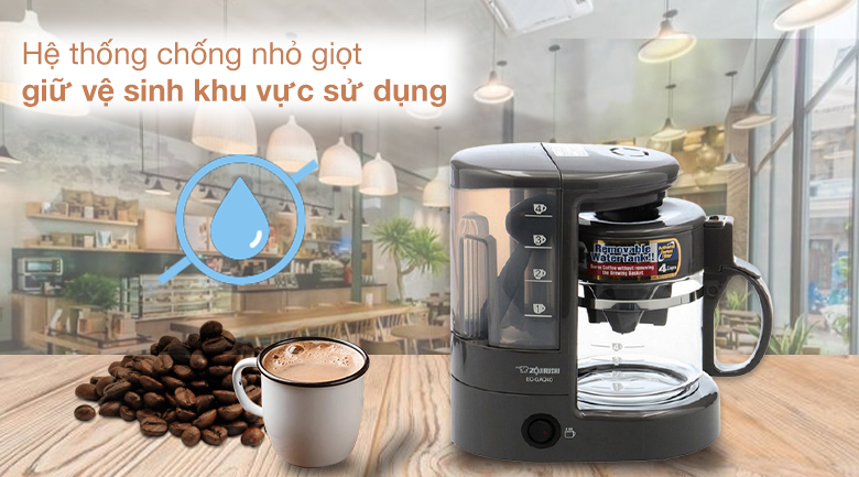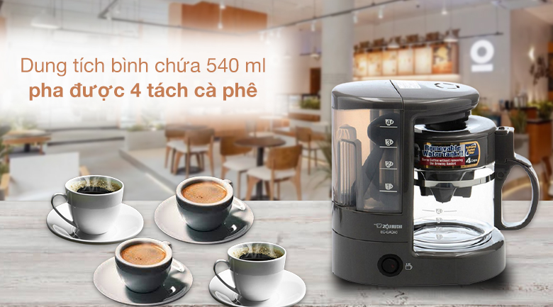 Máy pha cà phê Zojirushi EC-GAQ40-TA với thương hiệu Nhật uy tín, công suất 600 - 650W, dung tích 540 ml, trang bị chức năng hiện đại như chế độ giữ ấm tự động, thang đo hiển thị mực nước, chống nhỏ giọt kết hợp bộ lọc than hoạt tính mang đến những ly cà phê thơm ngon, bổ dưỡng cho người dùng thưởng thức, xứng đáng là lựa chọn tin dùng của người Việt.