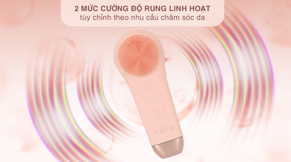 Máy rửa mặt Halio được trang bị 2 mức điều chỉnh cường độ rung, cho phép người dùng lựa chọn chế độ phù hợp với từng nhu cầu chăm sóc da, từ làm sạch nhẹ nhàng hằng ngày đến massage thư giãn sâu hơn.