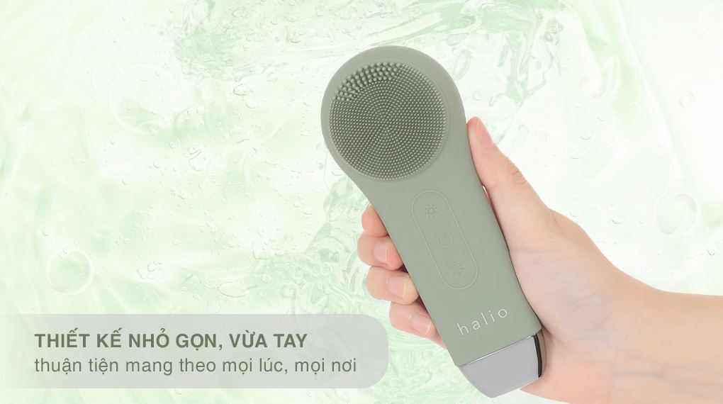 Máy rửa mặt và massage Halio 5 in 1 Sage Green được thiết kế nhỏ gọn, dễ thao tác, phù hợp cho nhiều loại da, kể cả da nhạy cảm.