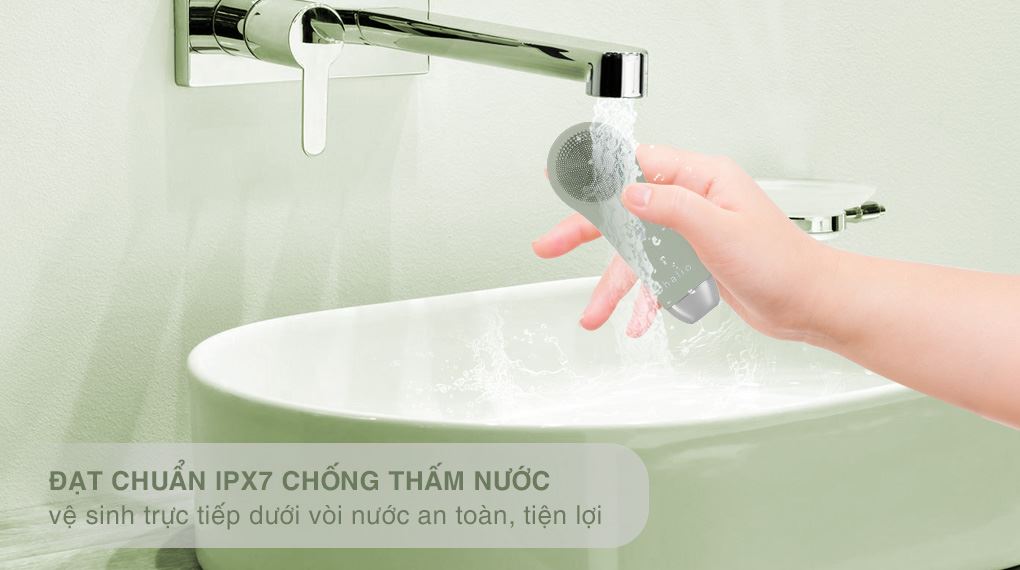 Máy rửa mặt Halio đạt chuẩn chống nước IPX7, đảm bảo an toàn khi sử dụng trong phòng tắm.